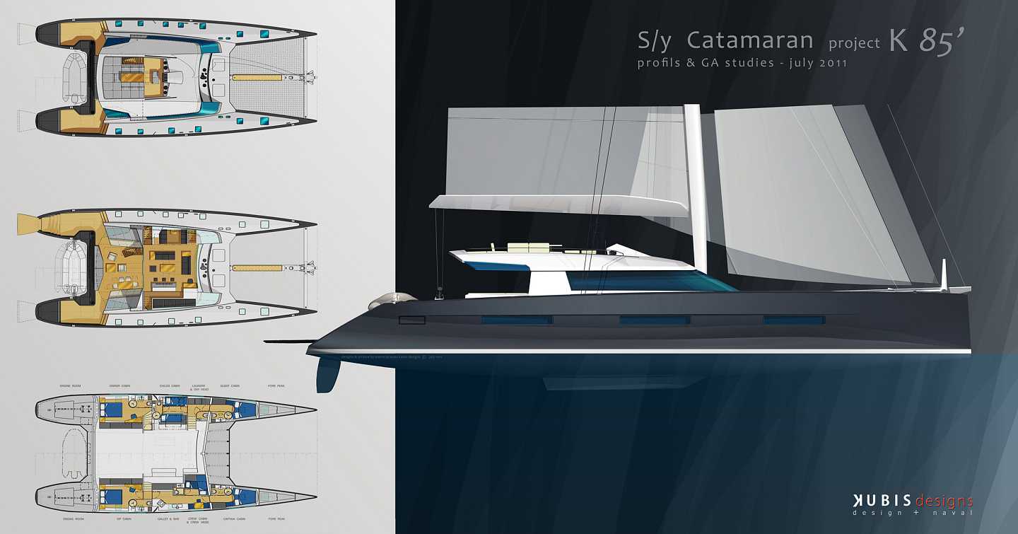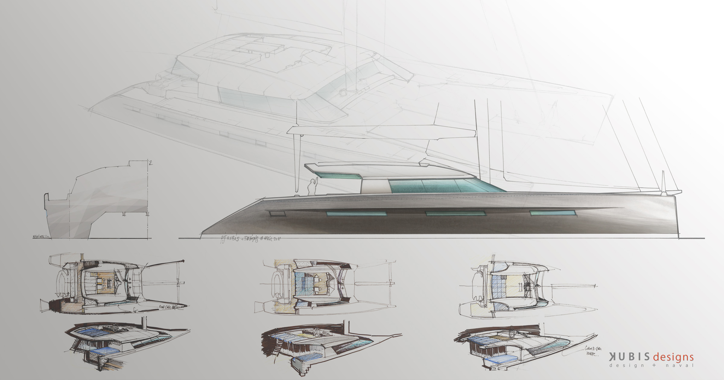 Research, design and 3D modeling for a large composites catamarann around premises which are:
